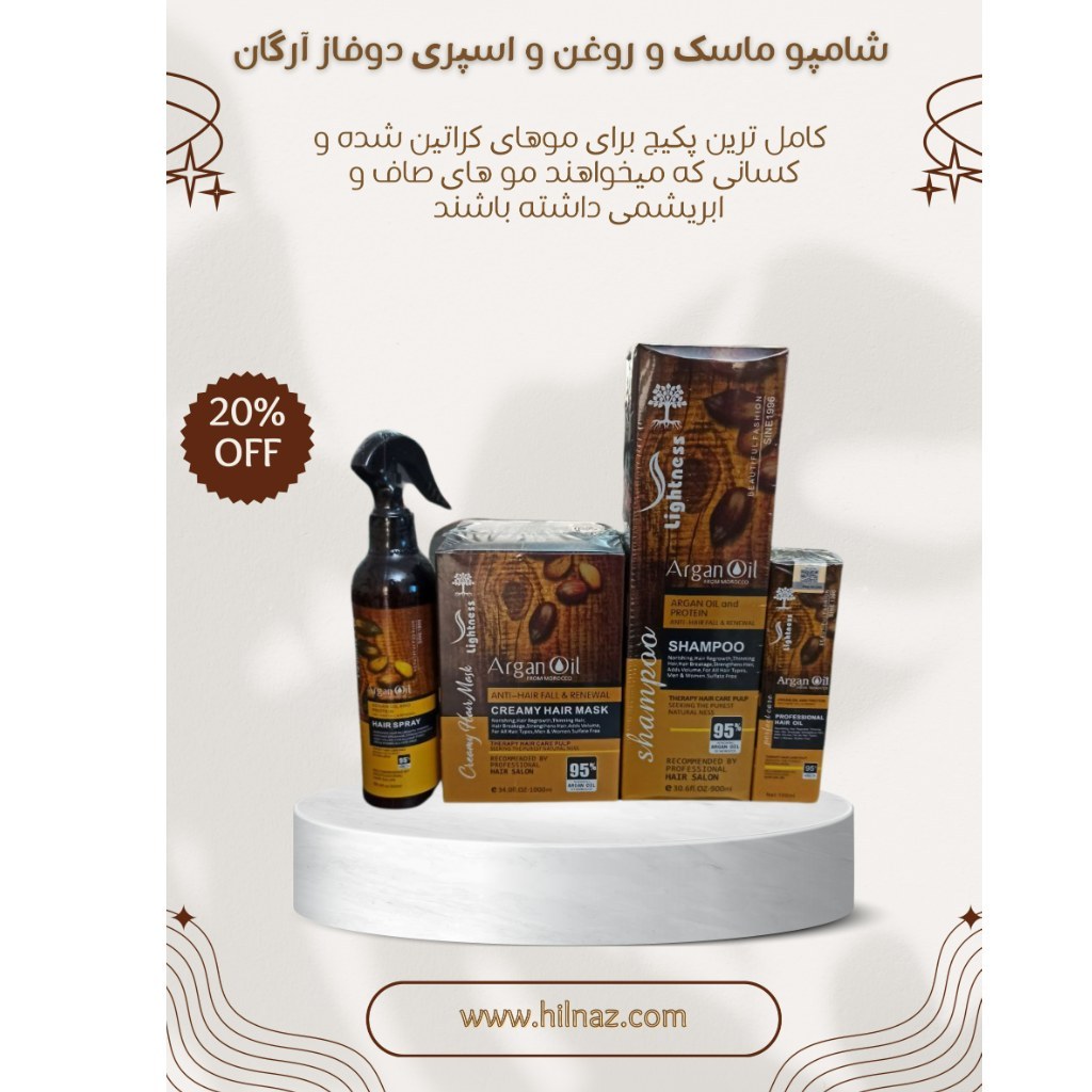 (پک اقتصادی ) شامپو و ماسک و روغن آرگان لایتنس لیبل دار (اصلی)(حجم ۹۰۰ + ۱۰۰۰ + ۱۰۰ میل) ا lightness Shampoo and mask pack and argan oil