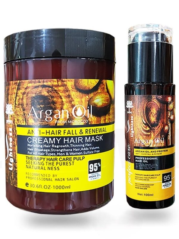 (پک اقتصادی ) شامپو و ماسک و روغن آرگان لایتنس لیبل دار (اصلی)(حجم ۹۰۰ + ۱۰۰۰ + ۱۰۰ میل) ا lightness Shampoo and mask pack and argan oil